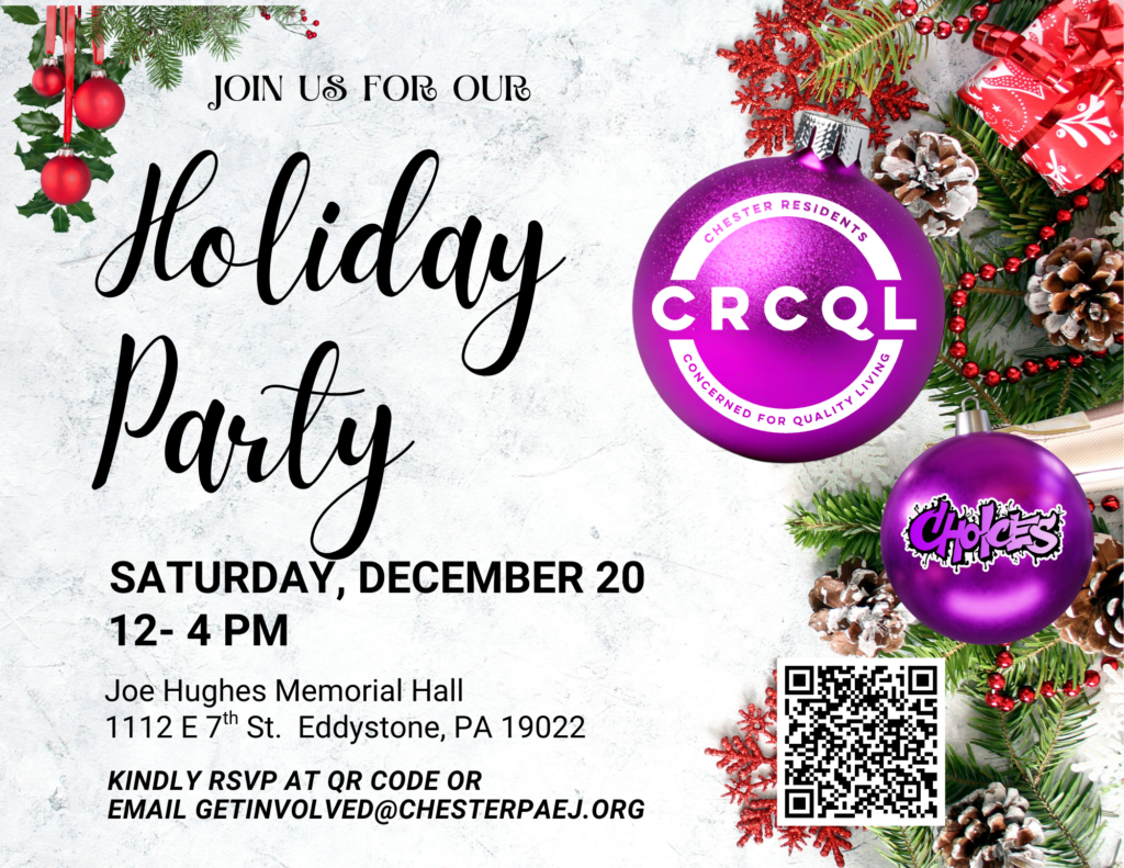 CRCQL General Meetings are for Chester residents, Delaware County residents, allies & supporters of environmental justice in Chester City and across the region. We welcome newcomers!